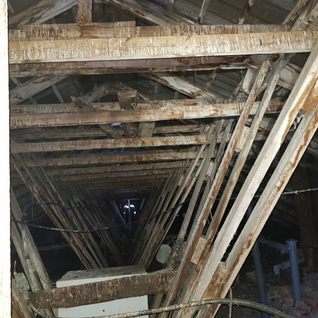 Строители подрядной организации ООО «Стройреставрация» разобрали старое покрытие кровли, выполнили полную замену деревянных элементов конструкции крыши и обработали огнебиозащитным составом, смонтировали новое покрытие из металлочерепицы и водосточную систему, выполнили ремонт кирпичной кладки вентиляционных шахт, обшили их профилированным листом для защиты от внешних воздействий и произвели установку зонтов, провели работы по монтажу слуховых окон. Кроме того, на кровле смонтированы ходовые мостики и лестницы для более качественного обслуживания и эксплуатации.