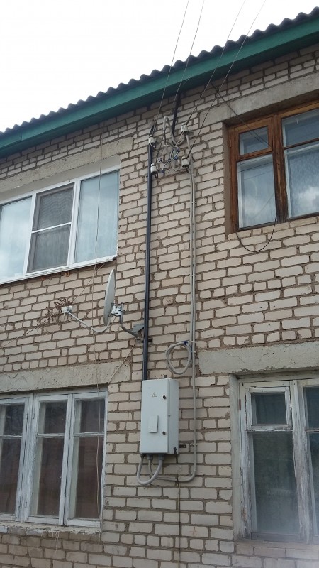 В каждом из домов установлены шкафы вводные ЩРВ, осуществлена прокладка кабельных линий распределительных сетей от вводных шкафов до этажных щитов и щитов квартирных, для учета потребления электроэнергии общедомовых нужд установлены счетчики Меркурий 201.2, выполнен монтаж групповых сетей освещения лестничных клеток, коридоров и площадок перед входами в подъезды с установкой современных энергосберегающих светильников со светодиодными лампами. Для автоматического управления электрическим освещением в зависимости от уровня освещенности, создаваемой естественным светом, установлены фотореле и инфракрасные датчики движения, предназначенные для автоматического включения нагрузки при появлении движущихся объектов в зоне обнаружения датчика с возможностью настройки времени отключения и уровня освещенности. Для освещения подвальных помещений осуществлена прокладка электросетей с установкой светильников с лампами накаливания. Также было выполнено заземление металлических шкафов для размещения баллонов сжиженного газа и металлических трубопроводов систем холодного водоснабжения, водоотведения, газоснабжения и отопления, что значительно повысило электробезопасность жилых домов.